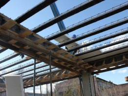 - Пространственные треугольные железобетонные лучи с арматурным каркасом,